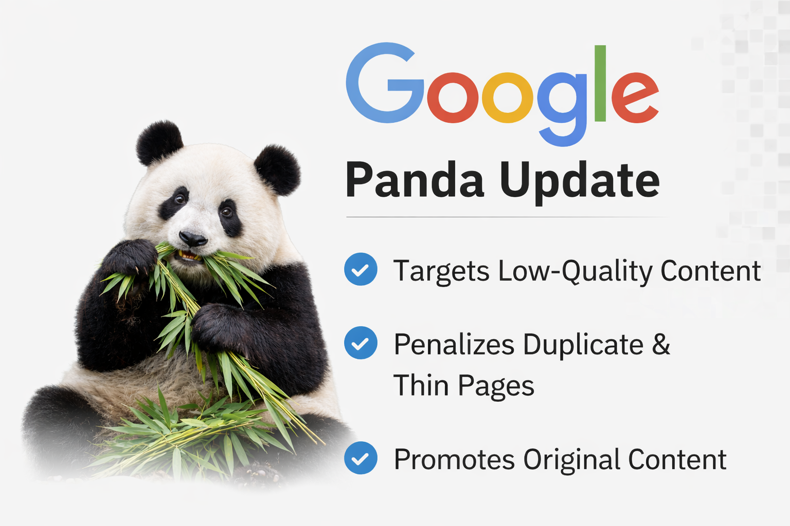 Panda checks whether the content on a website is useful, informative, and original.